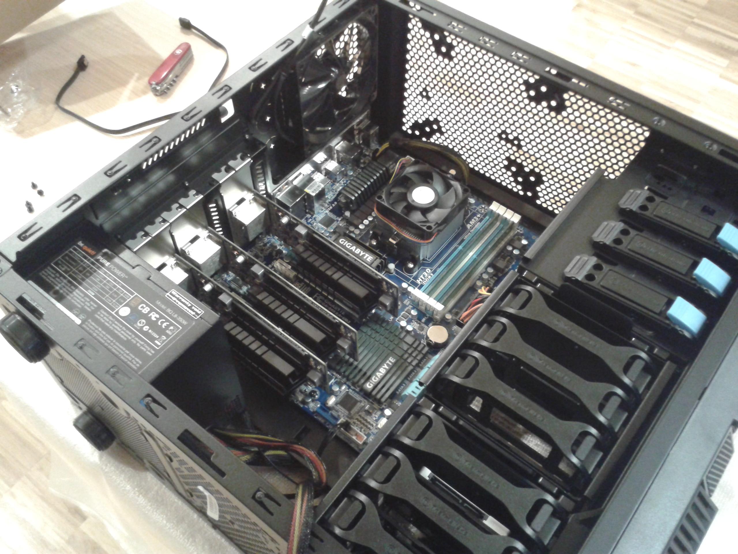 Rein theoretisch reicht sonst ein einfaches Mainboard mit x16 + x4 PCI-E und ein Celeron drauf (wenn man Intel nimmt) und 4GB Ram.