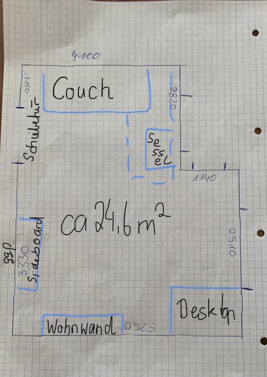 Da meine Wohnung gerade Kernsaniert wird, wollte ich fragen was denn für mein Wohnzimmer (Skizze angefügt) ca25m^2 sinnvoll wäre? Macht 5.1 Sinn? Wenn ja würde ich erst mal mit 2.0/1 oder 3.0/1 und einem Avr anfangen um das Budget nicht zu sprengen. Müsste es aber wissen um Kabel ggf vorzuverlegen.