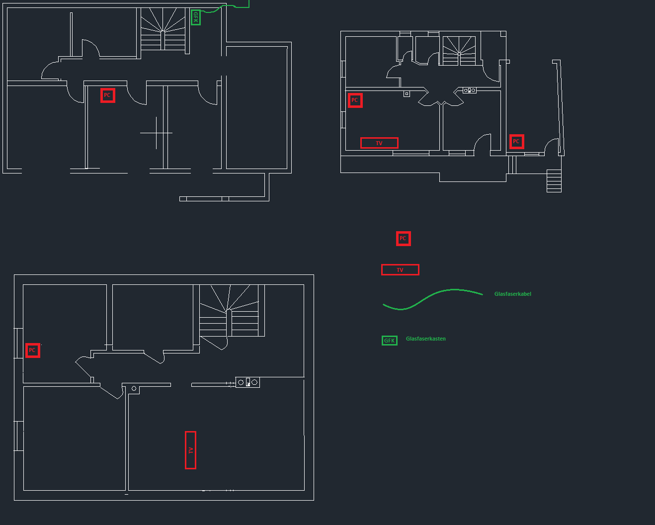 Vom AP im Erdgeschoss wird ein Verlegekabel in jeder Etage gelegt. Von diesem Anschluss