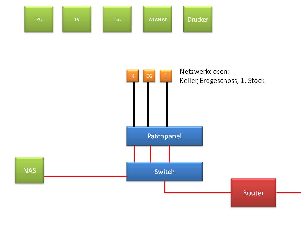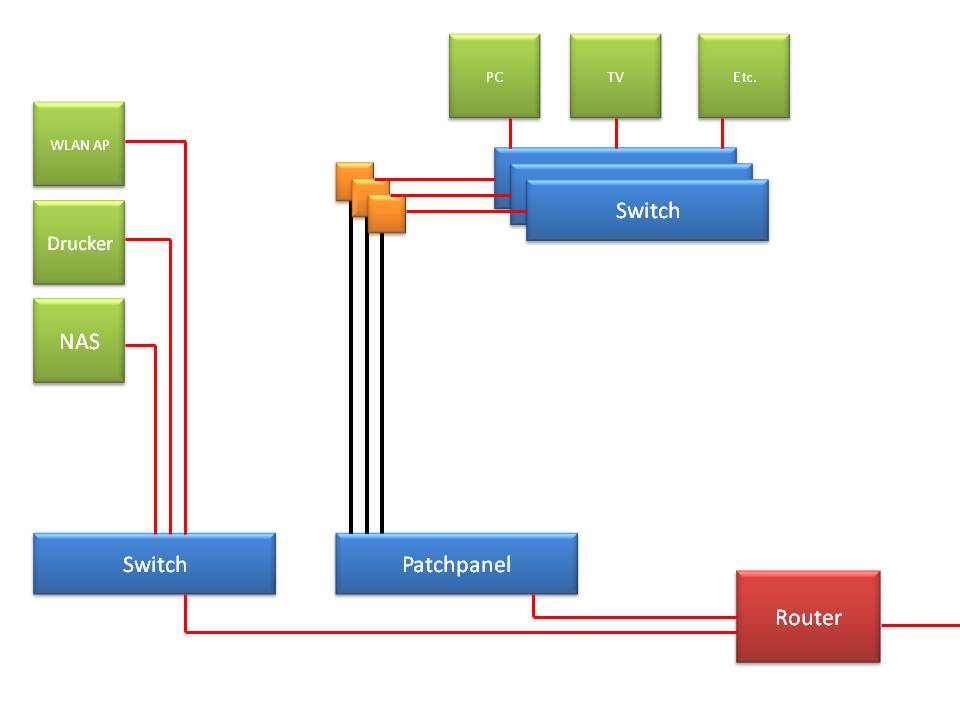 aus wird etagenweise über einen Switch weiter mit Patchkabeln verlegt?