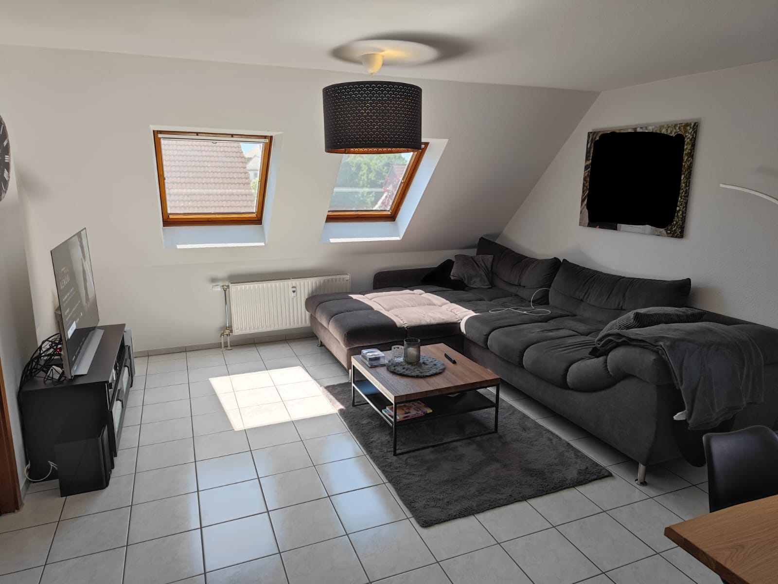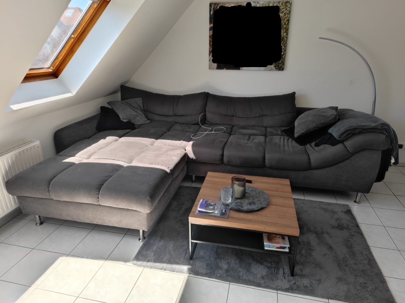 Unten siehst du mal unseren Wohnbereich. Wie du auf den Bildern siehst, haben wir in der Ecke nicht nur extrem wenig Platz, sondern sind auch noch Deckentechnisch sehr limitiert.