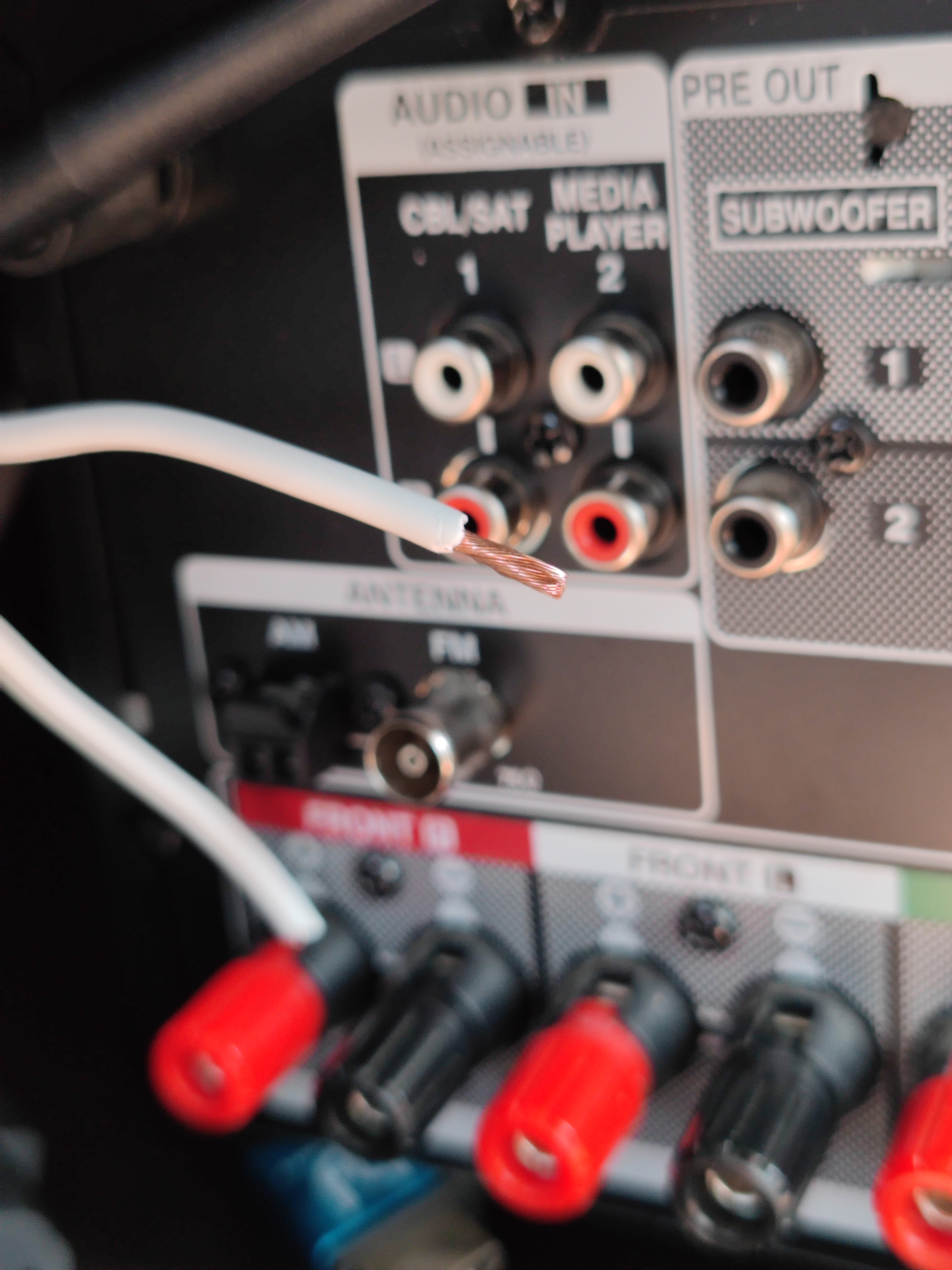 Ich kann es dir nicht sagen. Ich habe es mit den Hülsen hinbekommen. Dann ging der rechte Speaker nicht. AVR umgedreht, Kabel ist rausgefatzt. Wieder eingesteckt. Und AVR geht wieder aus.