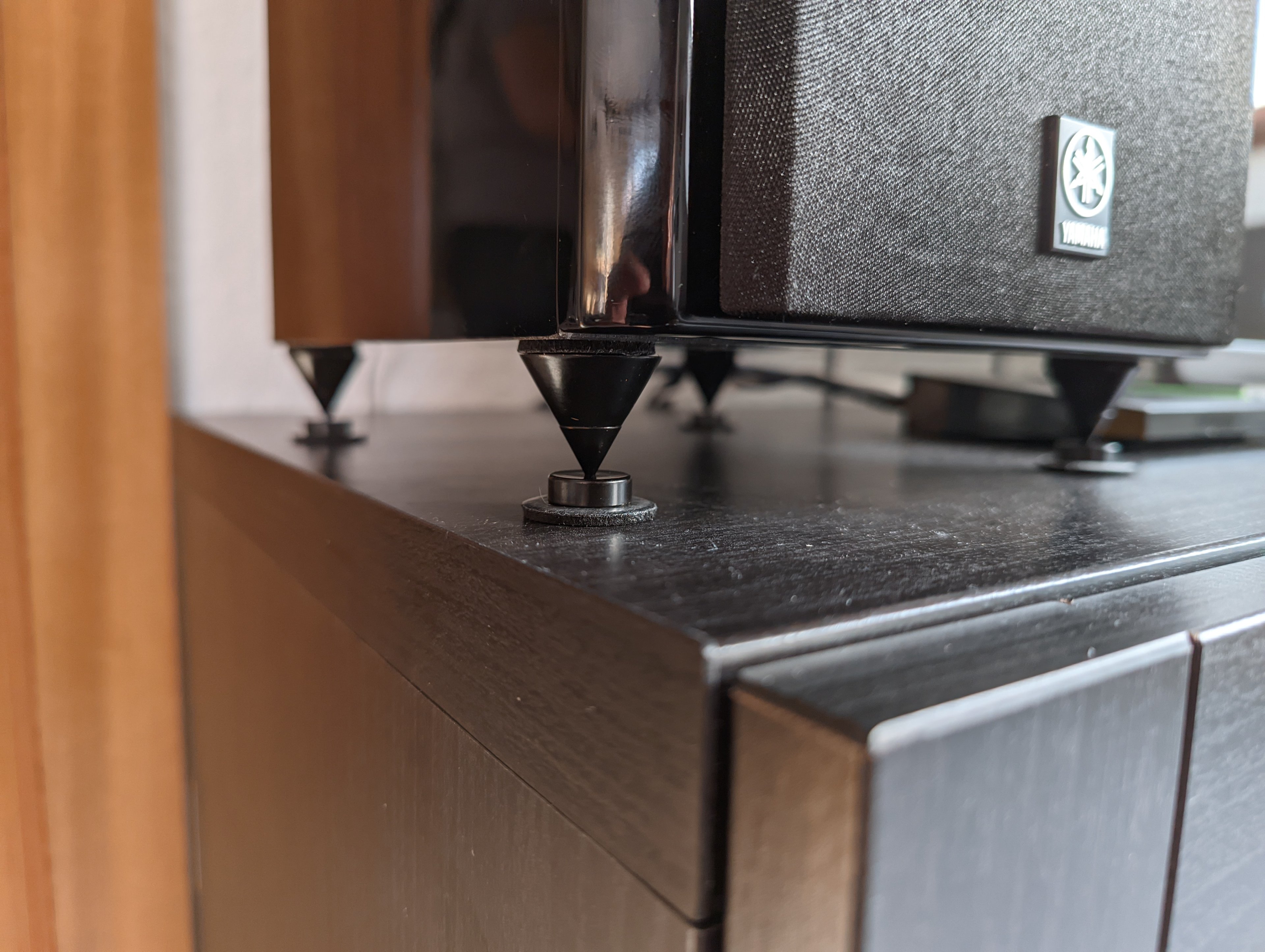 Ich hatte das bei einem Bekannten gesehen, finde ich mega schick und schaden wird es definitiv nicht. Vor den Spikes meine ich leichte Soundveränderungen durch die Vibration des Holzes gehört zu haben.