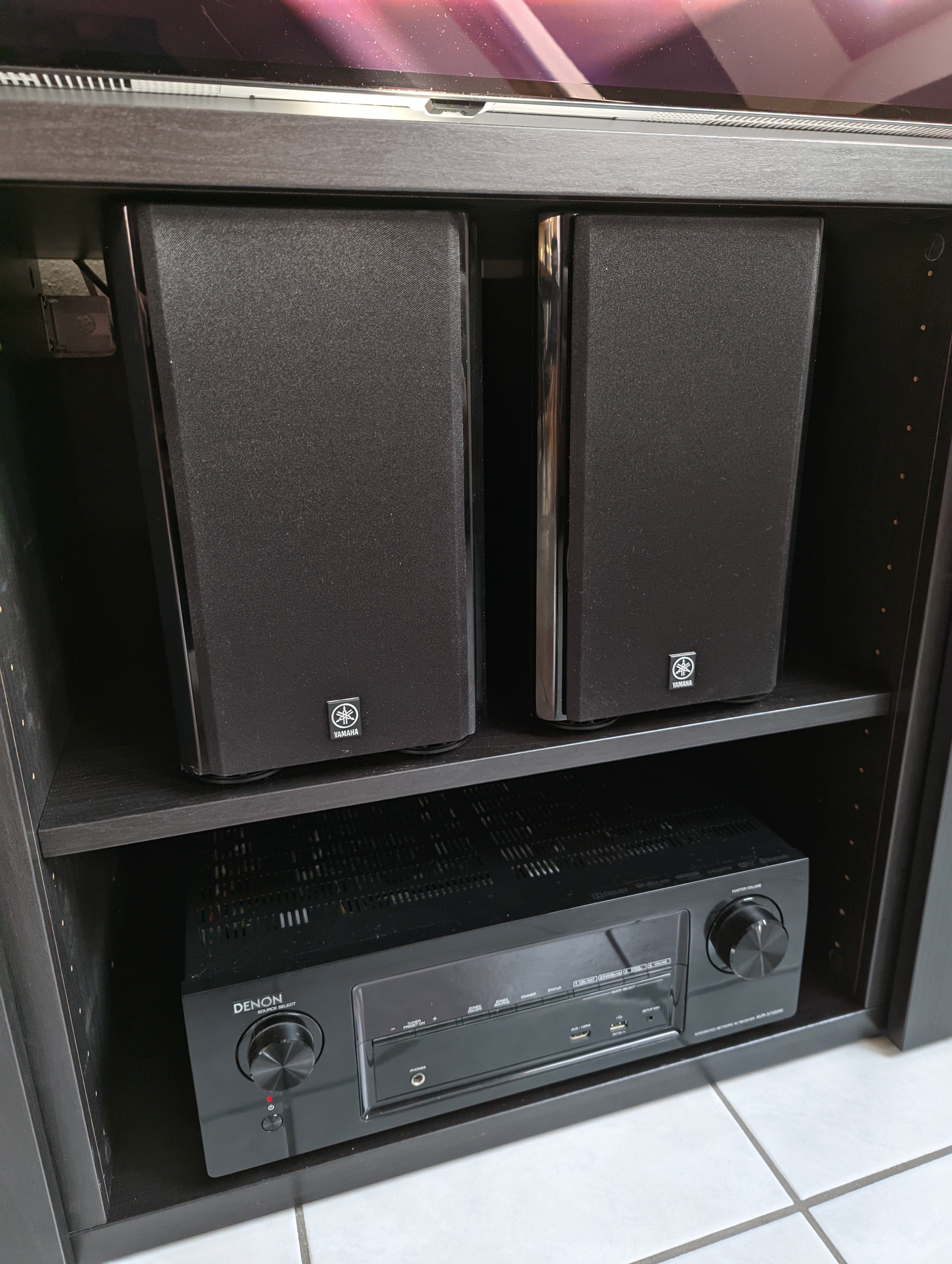 Hört sich gut an, werde ich mal probieren, ich befürchte nur, dass beide nebeneinander nicht funktionieren wird, da 2x Yamaha = 60cm, Besta-Regal innen = 56cm. Aber ich finde da bestimmt eine Lösung. Eventuell untereinander, ich muss es einfach Mal testen.