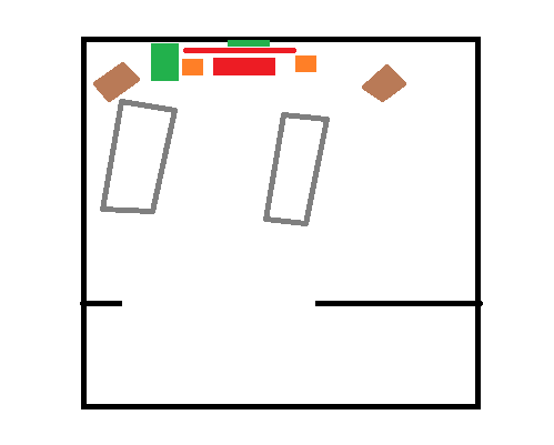 Der Raum hat an die 30qm und somit ist dort noch etwas Platz zum rücken.