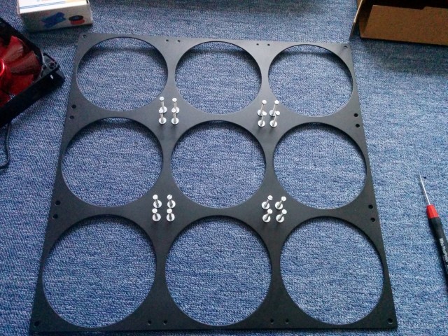 Hier sieht man gut meine Obi M3 Schrauben. Mir ist absolut unverständlich warum man hier nicht einfache Lüfterschrauben verwenden kann. Vermutlich werde ich die Löcher aufbohren und gegen normale Lüfterschrauben ersetzen. Ich hab nur der Optik halber erst einmal auf M3 + Muttern gesetzt. Siehe folgende Bilder: