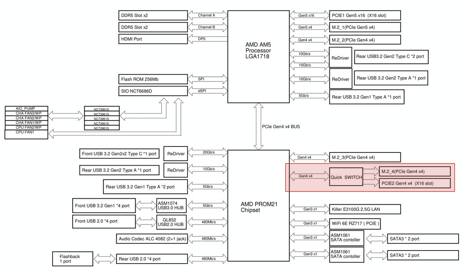 Also im Handbuch hab ich nix gefunden, aber über die Produktseite war eine PDF verlinkt. Aus der werde ich allerdings nicht ganz schlau. https://pg.asrock.com/Support/QA/AMD_600_PCIe_M.2_Bandwidth_Table.pdf