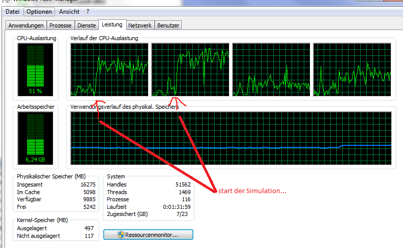 Meine Ideen waren z.B. die 2 Kerne auf den die Berechnung läuft auf 5 GHz zu takten oder die Daten auf eine Ramdisk zu packen. Hab einmal die Aulastung des CPUs als Screenshot angehängt.