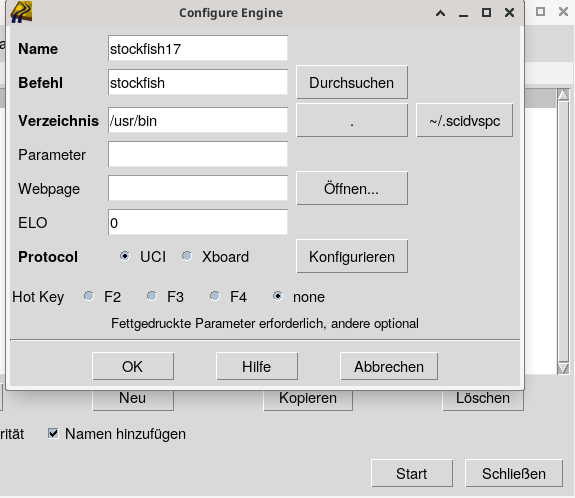 Hallo ich will in einem Schachprogramm scidvspc eine weitere Analyseengine namens stockfish ver. 17 einbinden.