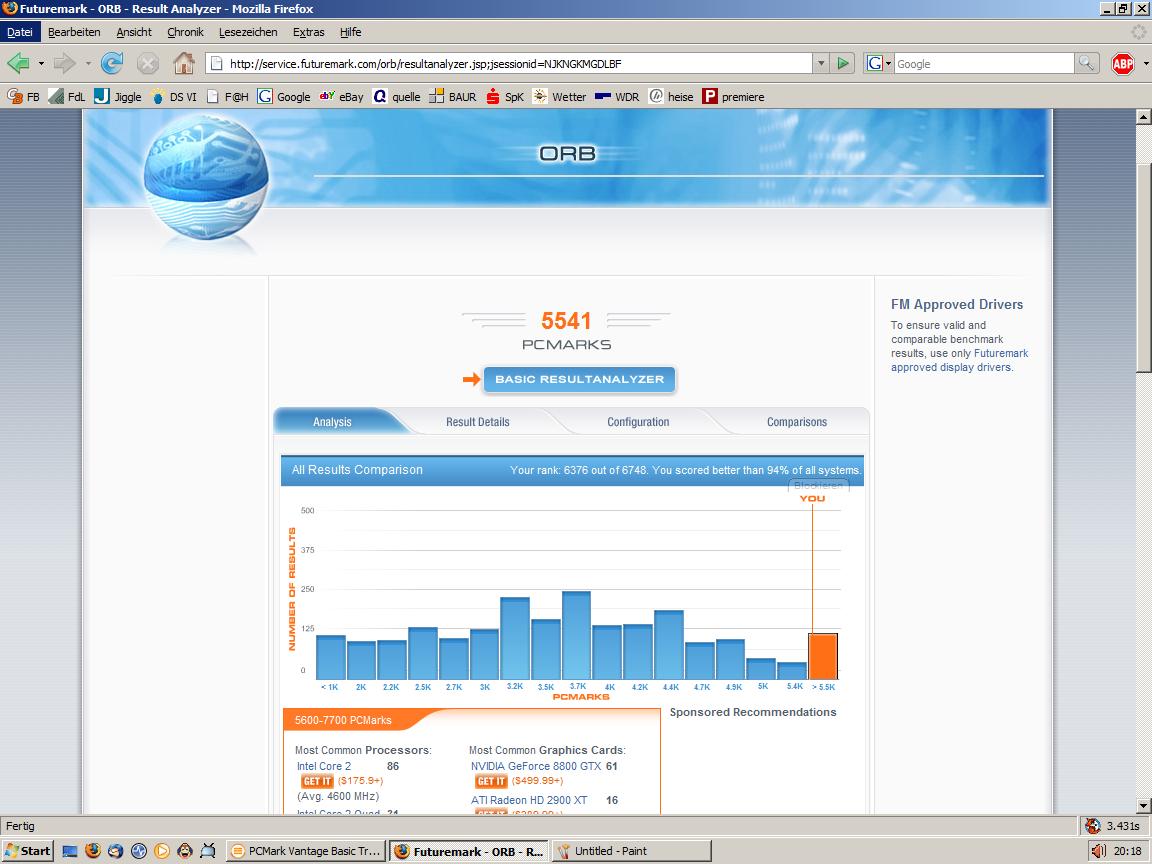 also der download läuft und vista 64 ist nun das erste mal zu was nutze... wenn, ja wenn es nicht abschmiert;-) denn so ein unvollkommenes OS hab ich lange nicht gesehen... ich könnte euch so viel sagen zu vista... aber ich habs gekauft ich trottel... wenigstens kann ich diesen Benchmark laufen lassen...