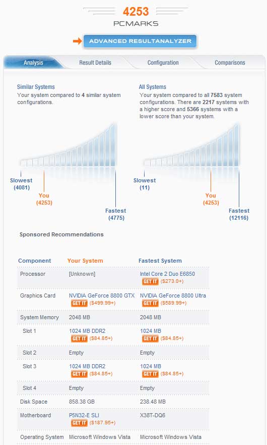 Ich Dummbatz habe mich verleiten lassen, dieses Benchmarkprogramm zu installieren. Über den Leistungswert kann ich mich überhaupt nicht freuen. Ich bekomme das Programm nicht deinstalliert, konnte es eh nur 1x verwenden. Und neuerdings teilt mir meine Blechkiste jedesmal nach versuchter Deinstallation mit ich müsse mein Windows Vista Ultimate 64bit neu aktivieren, da eine erhebliche Hardwareänderung vorgenommen wurde. Ich glaube, die Römer spinnen. Finger weg von dieser Gurke, oder sollte es an Vista liegen?