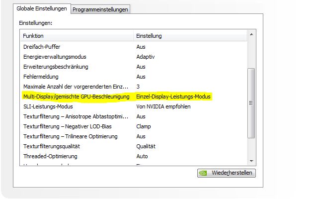 ich hab im google nichts brauchbares gefunden und weiss nicht den Unterschied,nach der instalation standt dort Multidisplay ,da man ja deiner Meinung nach nichts ändern sollte in den settings jedoch das Multi irritiert mich da also was genau muss ich dort einstellen?
