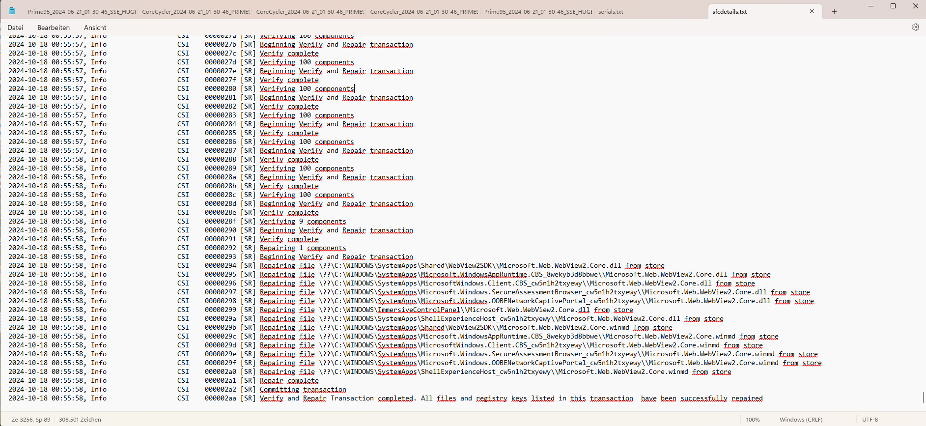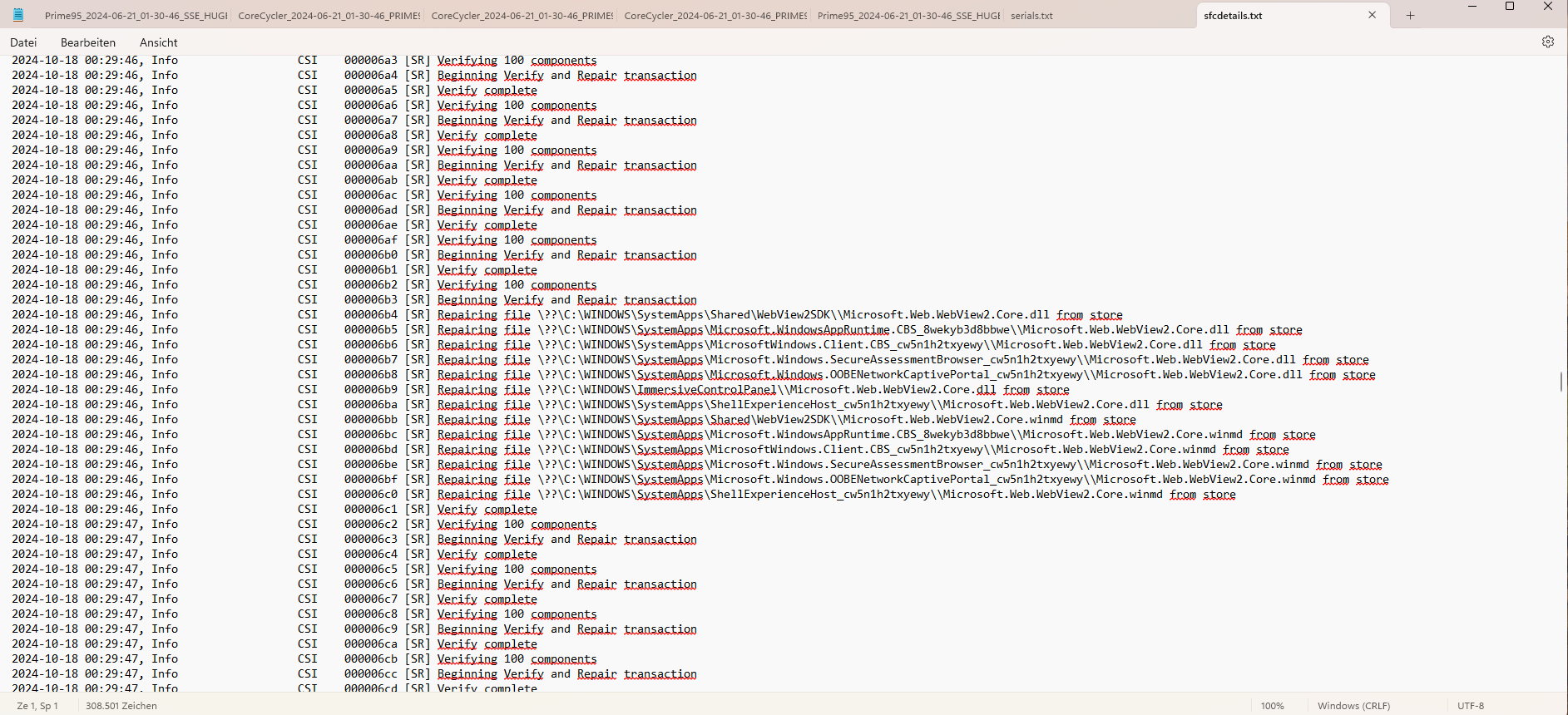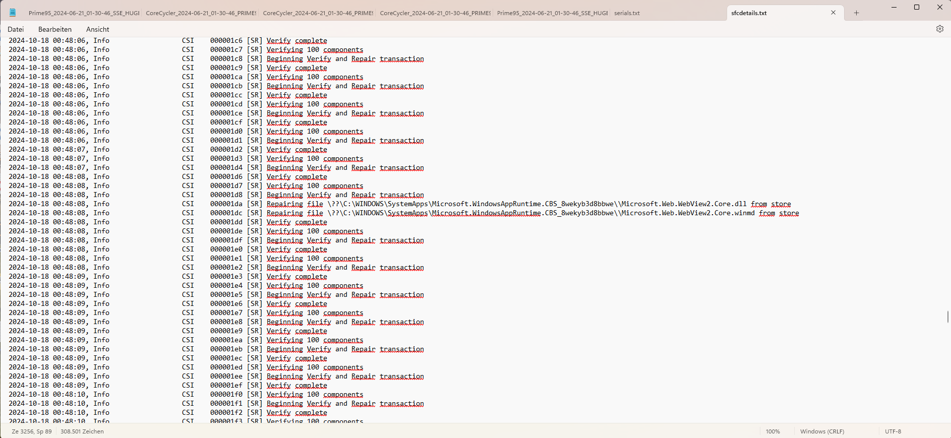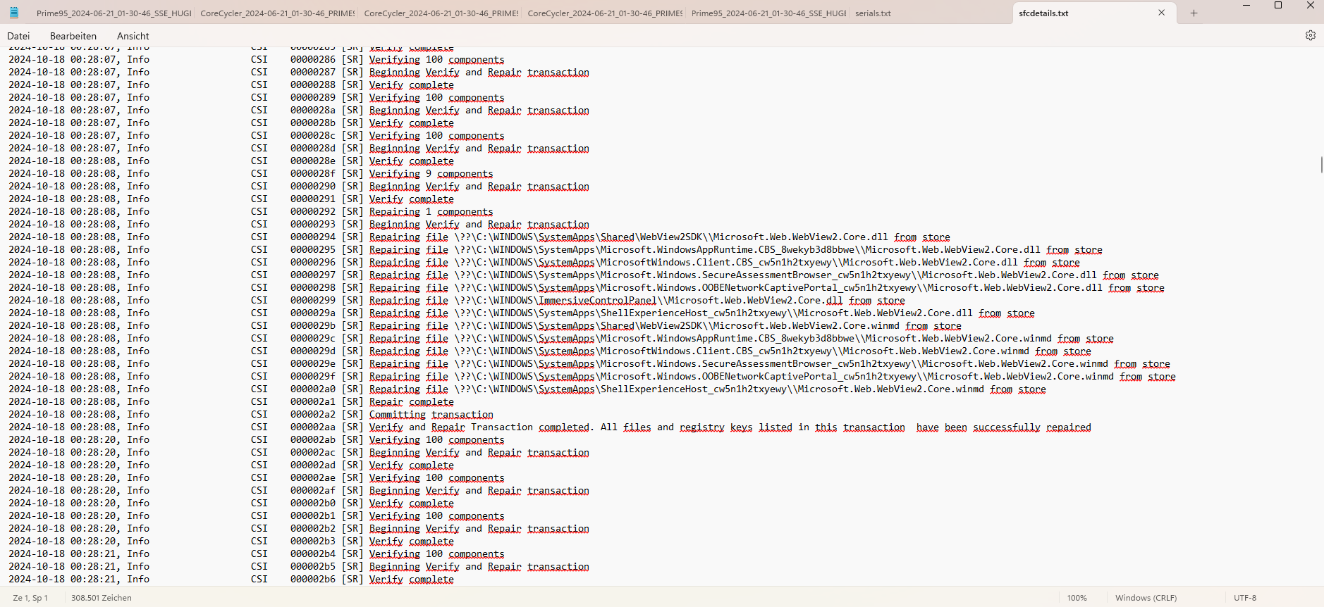 Welche Dateien sind denn jetzt beschädigt?f sc scannow scheint gefühlt immer etwas zu finden. Was steht da im logfile drin?