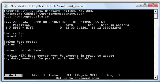 Ich versuche gerade mit Testdisk die Platte wiederherzustellen ohne meine 500GB Daten
