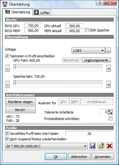 ich habe mir eine 4870 zugelegt. Ist ja auch ganz nett das Teil. Nur im Windows ist sie mir zu hoch getaktet. Deswegen würde ich gerne fragen, auf welche Werte ich die Karte im Windows ohne Probleme runtertakten kann.