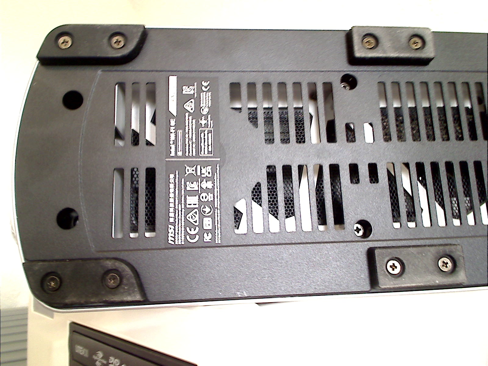 - Das Gehäuse hat überall Lüftungslöcher, außer vorne an der Front, also an den Seiten (wobei das z.T. dort visuell nur so aussieht), unten im Boden, hinten und auch oben am Deckel ist seitlich rundum offen, siehe Bilder.