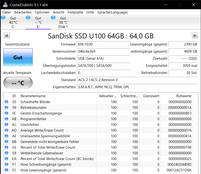 USB Stick: SanDisk Extreme 245MB/s 64GB, USB-A 3.0 NTFS formatiert
