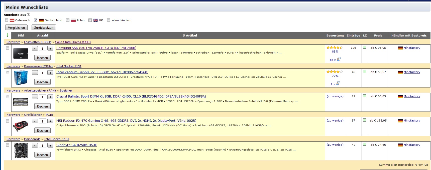 Ich möchte lediglich Mainboard, CPU, RAM, SSD und Grafikkarte aufrüsten.