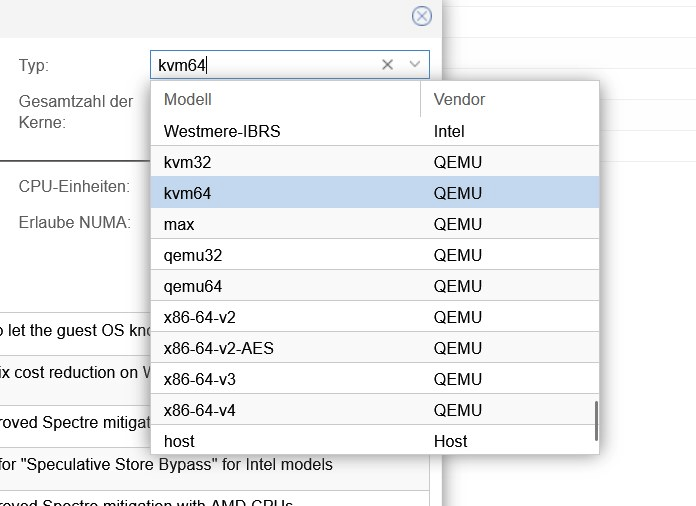 Empfehlungen gibt es noch Richtung kvm64, max und quemu 64
