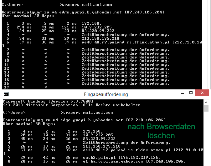 Sie kann über das polnische Netz ihre AOL-Mail Seite (mail.aol.com) nicht erreichen. Ebenso nicht über die AOL-Mail App.