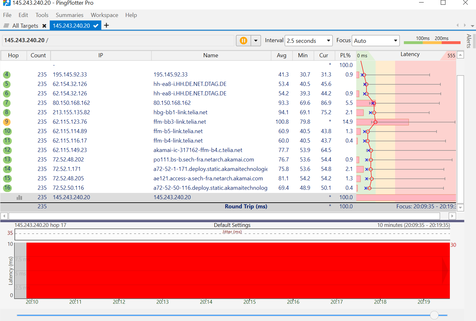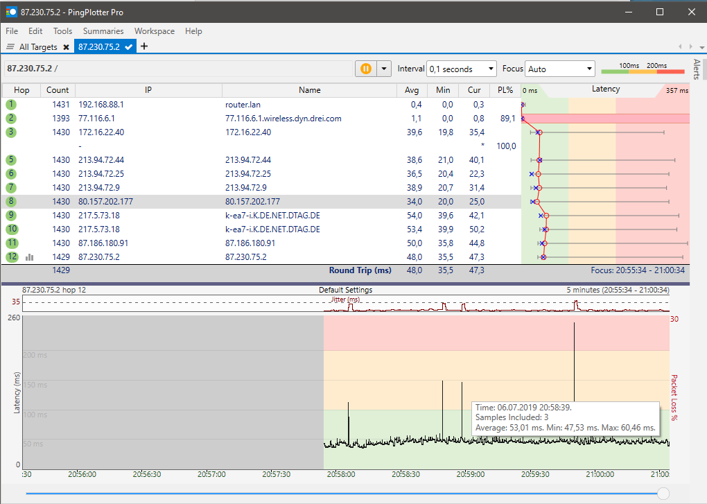 Bzw die Latenzen sehen eher nach LTE oder UMTS aus