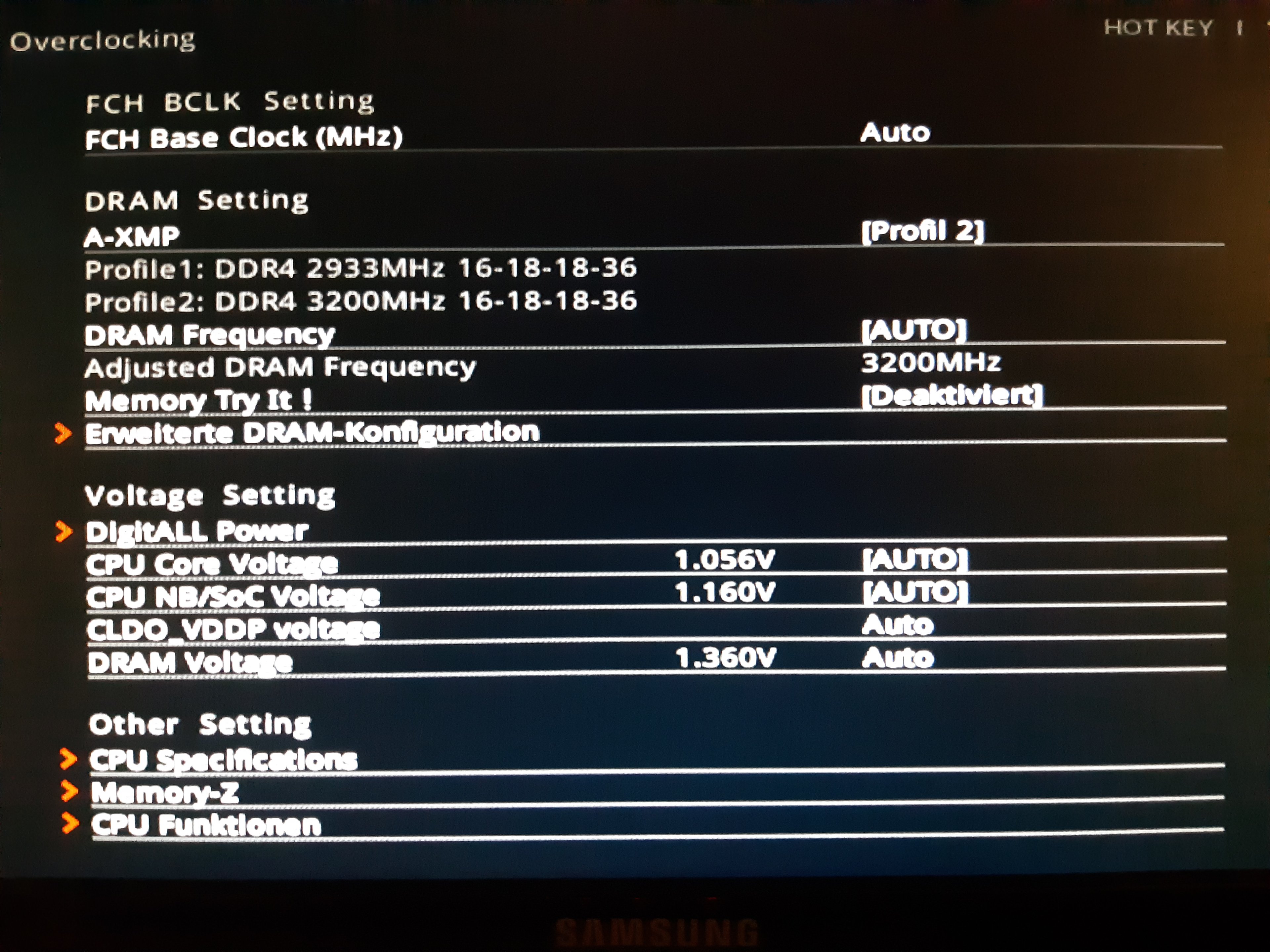 Hey ich habe mir den empfohlenen Speicher zugelegt. Und auf dem Mainboard 2 XMP Profile (standardmäßig) off: 2666Mhz 1. 2999Mhz 2. 3200Mhz. Wenn ich jedoch Das 2. Profil mit den 3200Mhz aktiviert habe wird die CPU ziemlich heiß, bzw. spielen dann die Lüfter verrückt und die Watt Zahl pendelt wild hin und her. Wie kann ich da Abhilfe schaffen?