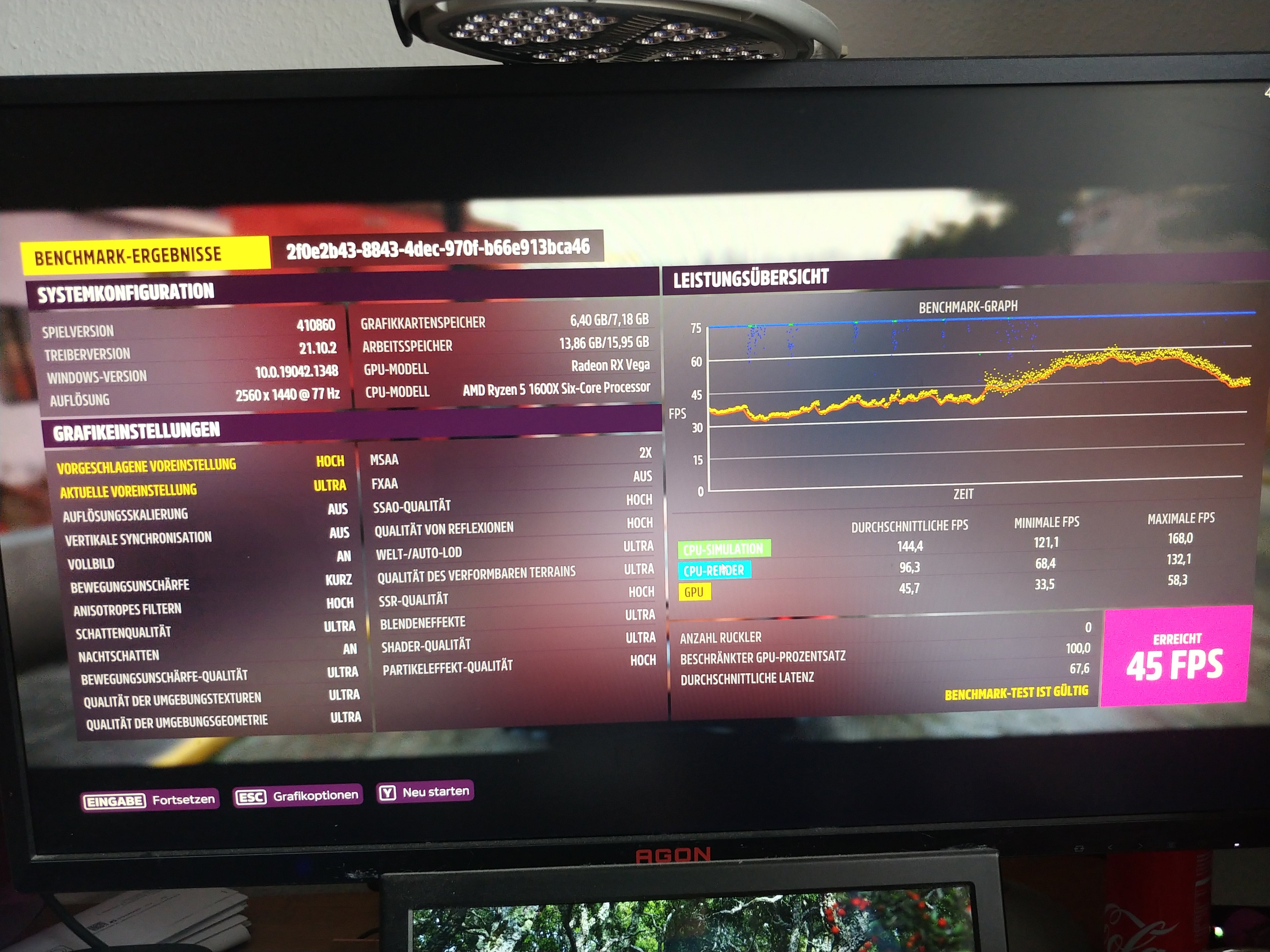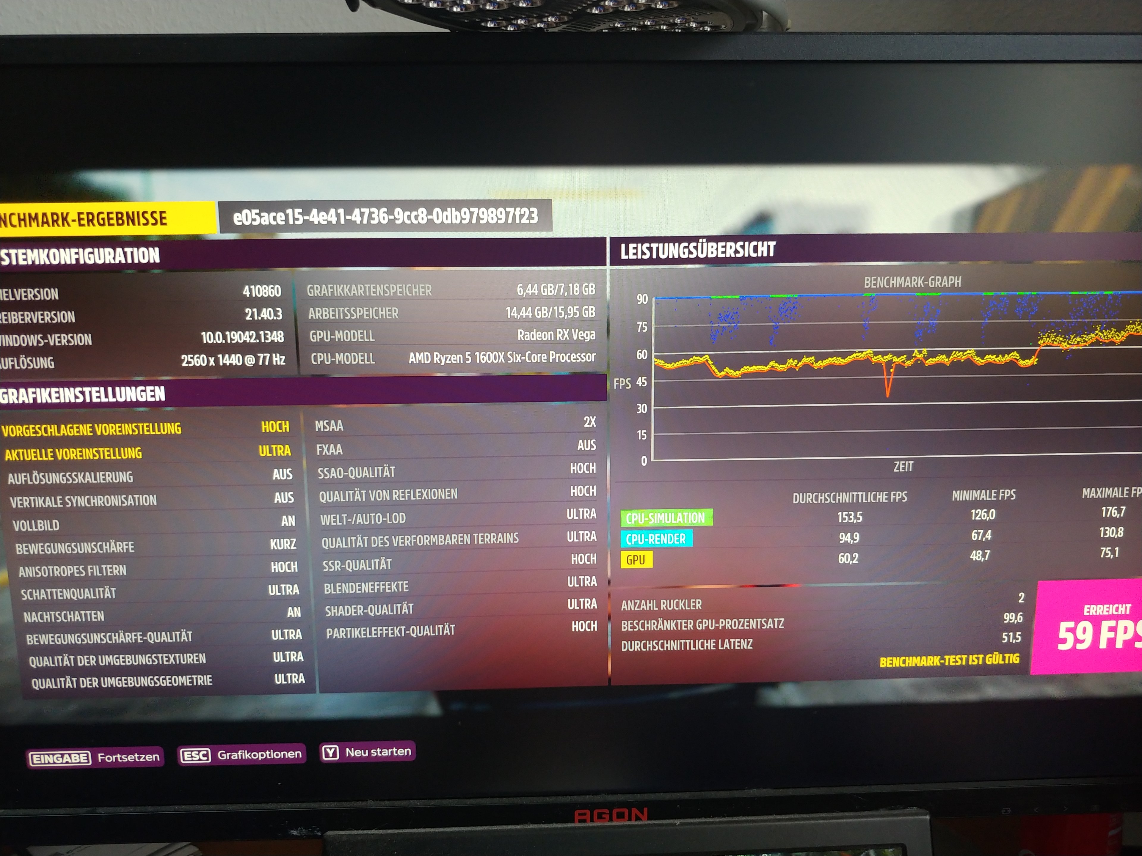 Mit 1:1 identischen GPU-Settings auch 1:1 identische Ergebnis mit 119FPS.