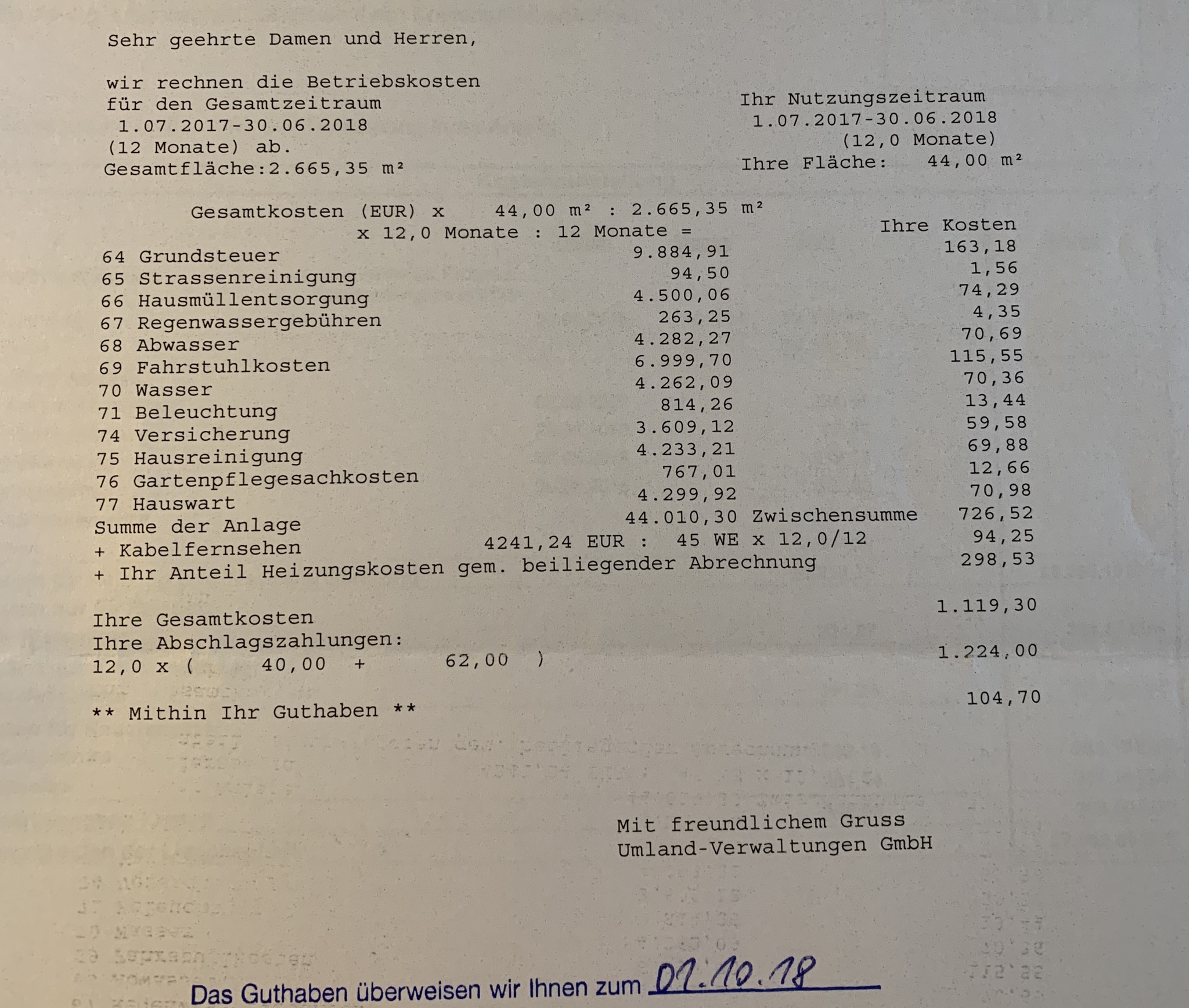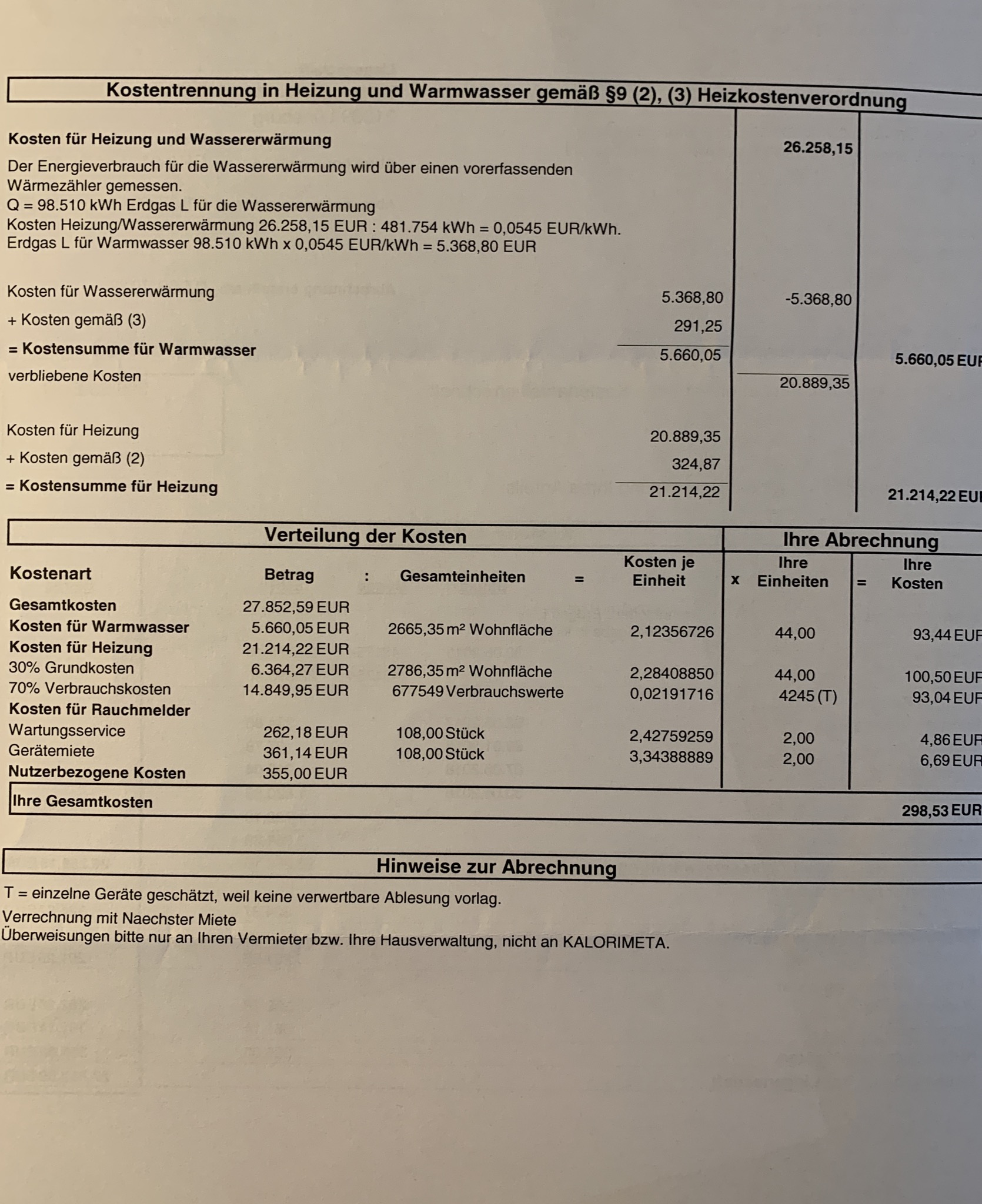Nun frage ich mich, wie diese Summe zustande kommen kann. Kann mir da jemand weiter helfen? Wenn jemand wirklich firm ist, würde ich ihm gerne Fotos der Abrechnung zukommen lassen. Für mich ist das wirklich nicht verständlich.