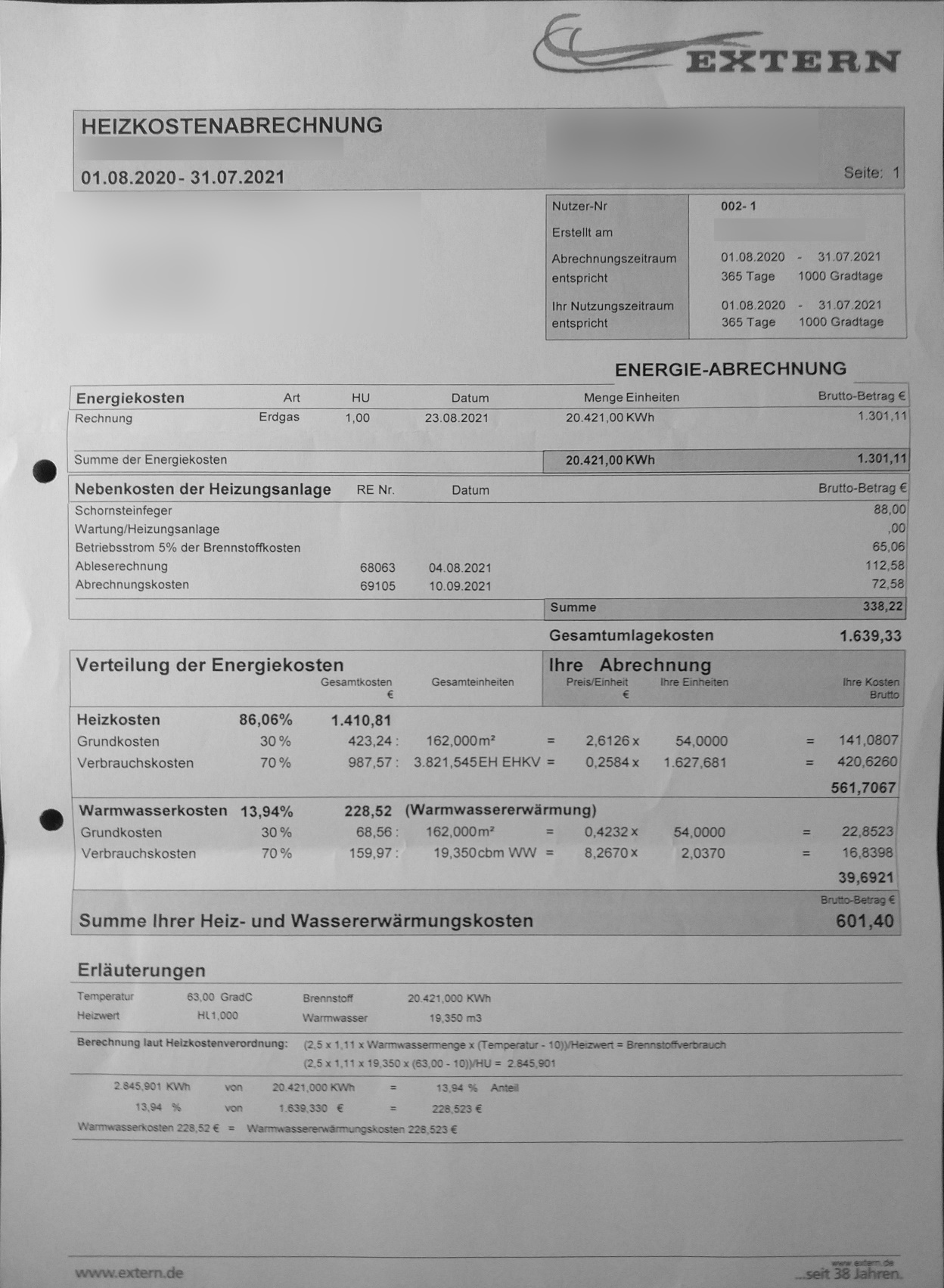 Ich finde es jedenfalls unbegreiflich, dass bei 150€ mtl. Vorauszahlung bei einer 55m²-Wohnung und einer Person eine Nachzahlung von ~500€ rauskommen soll.