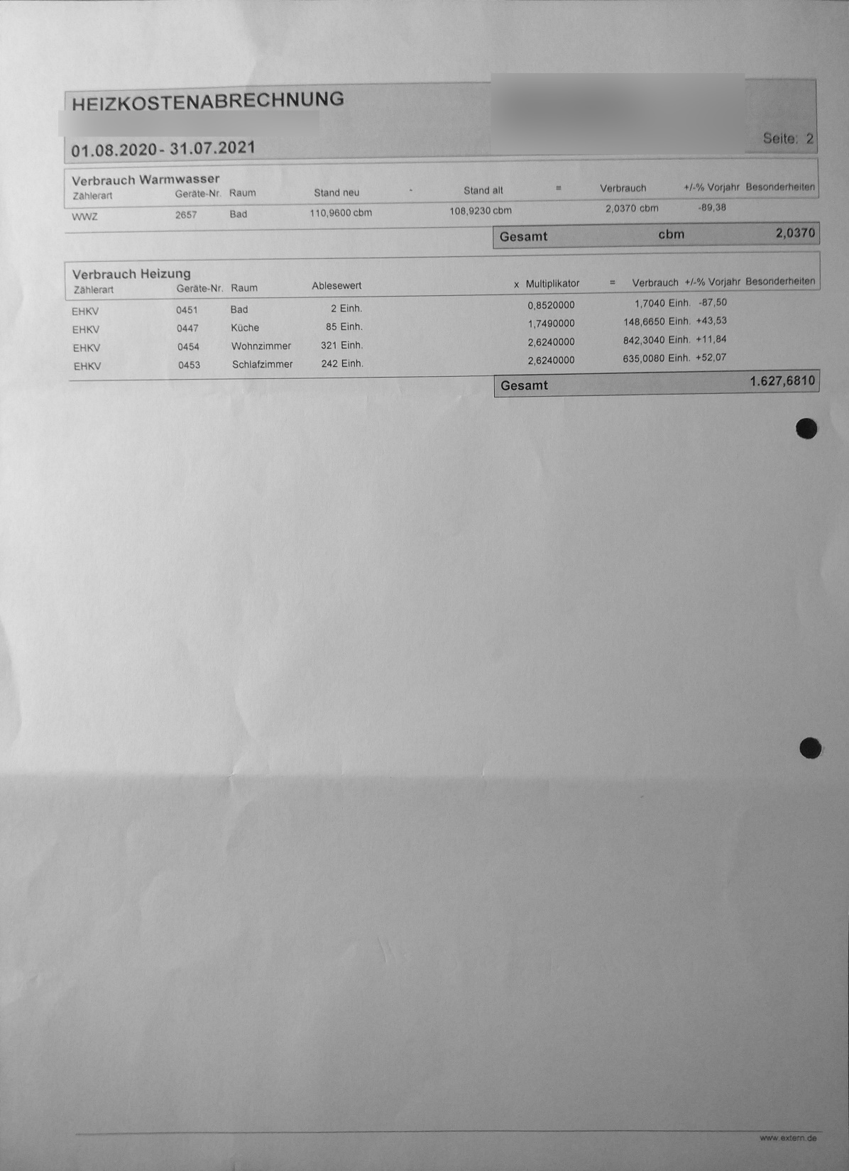 3. Beim Kaltwasser wird ein mir unbekannter Zähler einer mir ebenfalls unbekannten Waschküche genannt. Dort hat sie ihre WM stehen, meine WM steht bei mir im Bad. Auch wenn es "nur" um 0,064 m³ Kaltwasser geht sehe ich auch hier nicht, wieso ich mich an ihren Wasserkosten beteiligen soll, zumal im Vertrag dieser nicht aufgeführt wird ("2 Zimmer, 1 Küche, 1 Diele (Flur), 1 Bad/Duschraum, 0 Mansarde, 0 Keller, 0 Bodenraum, Fahrradabstellplatz und zur Mitbenutzung 1 Garten").