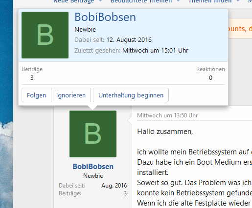 Man sollte eventuell abwarten, bis und ob sich der TE meldet.