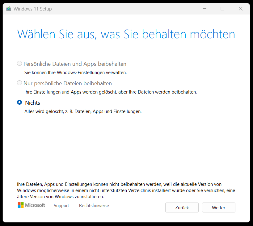 Interessant, von 22H2 Windows 11 Pro Insider Preview auf 23H2 mit dem Image kann ich nicht Upgraden, nur neu installieren: