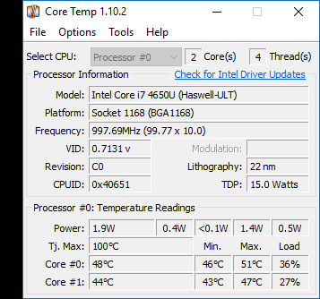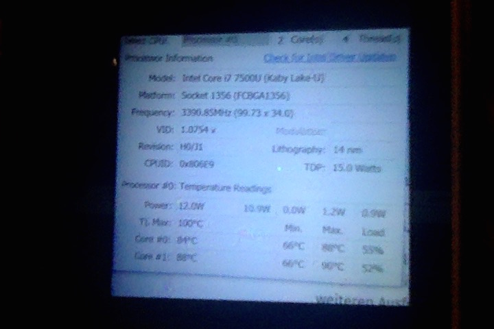 Noch eine Frage zu meinem Porsche book: Eben habe ich einen Film gesehen (Streaming, über Amazon prime, falls das wichtig ist) und es erschien mir sehr warm. Daraufhin habe ich mir CoreTemp heruntergeladen und das hat folgende Werte ergeben: