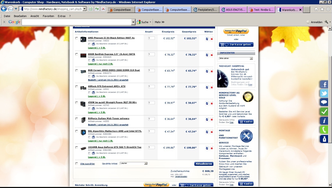 668EU ohne Versandkosten bei EINEM Anbieter mit CPU Kühler.