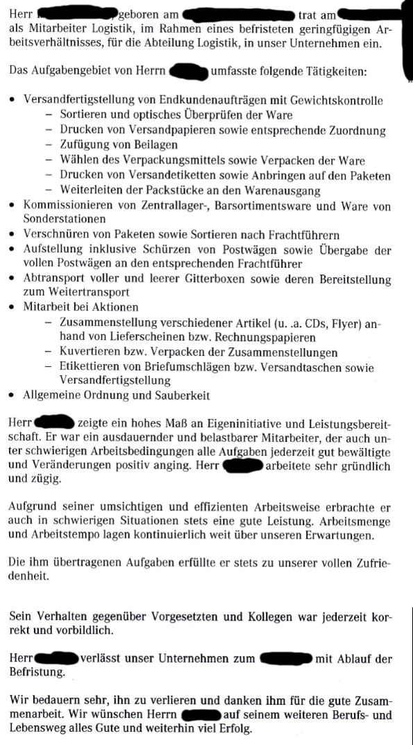 Es sei allerdings gesagt, was für viele Arbeitszeugnisse gilt: