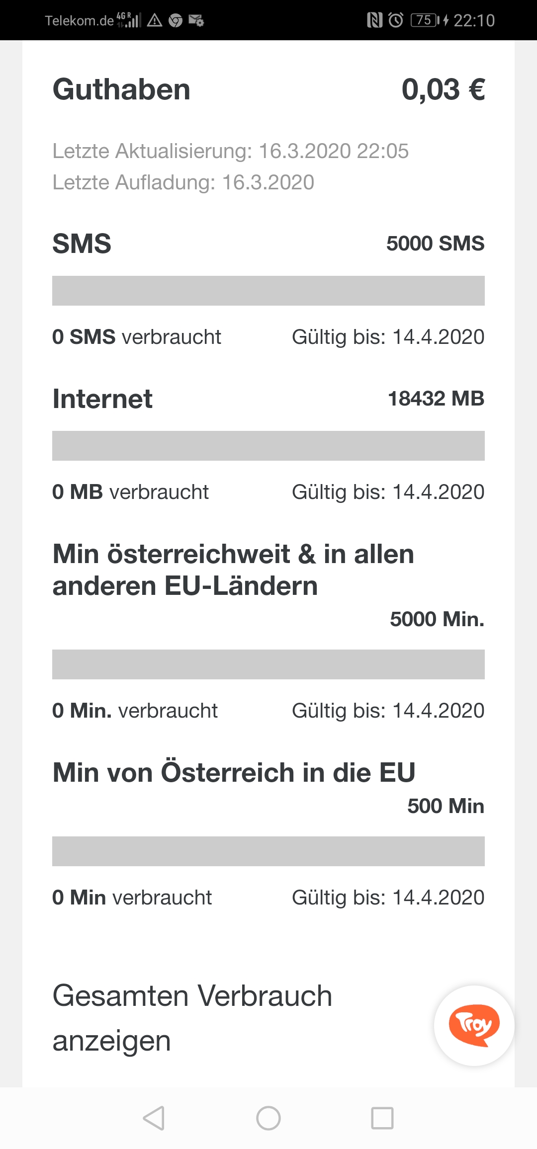 Wie oben hinzugefügt, ein AT-Vertrag nutzt in DE auf Dauer nichts weil auch das EU-Roaming Grenzen hat.