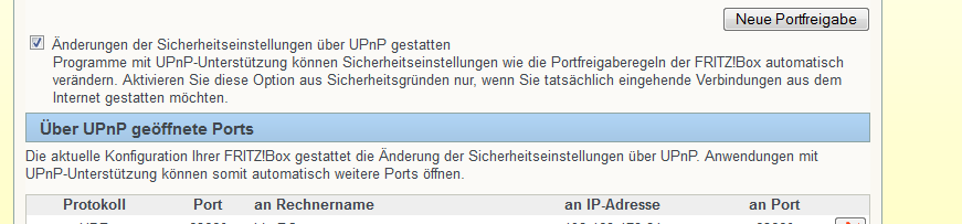 falls Du die Fritzbox haben solltest geht es zur Not über Upnp, siehe Pic;)