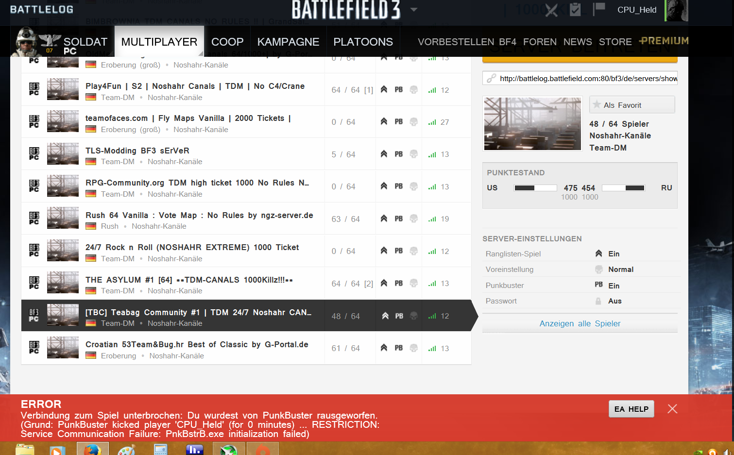 BF3 BF3 der Punkbuster kickt mich ständig mit folgendem Fehler