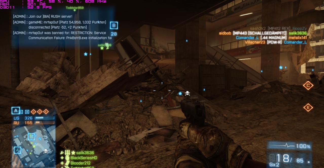 Ich wollte heute mit meinem 2 PC Battlefield 3 (RU Version) Spielen, also installiert und in einem Server beigetreten.