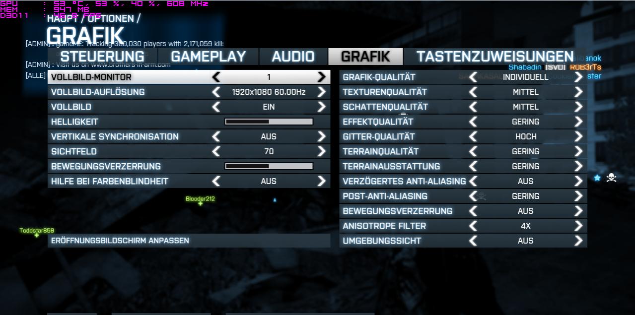 Um dann festzustellen das dass Game ruckelt trotz 50-60 fps? Ich Spiele unter diesen Einstellungen http://battlefield3masterguide.de/b...te-grafikeinstellungen-bester-kompromiss.html