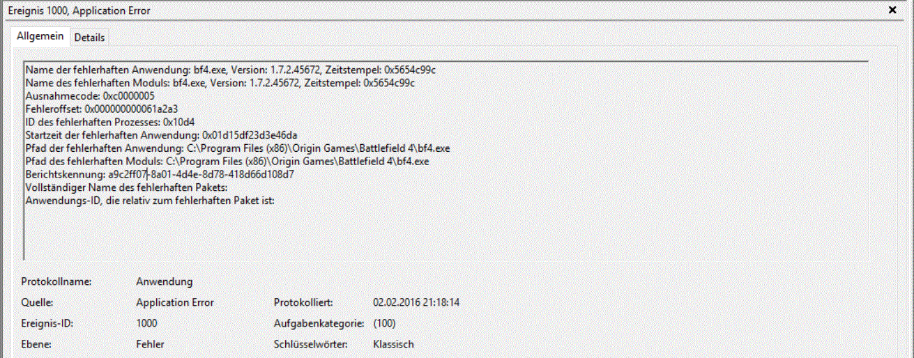 Seit längerer Zeit, tritt bei mir öfters das Problem das während des Spielens BF4 abstürtzt mit der Meldung " battlefield 4 funktioniert nicht mehr ". Was ich gemerkt habe das Spiel stürtzt dann immer ab wenn irgendwas in Action ist .