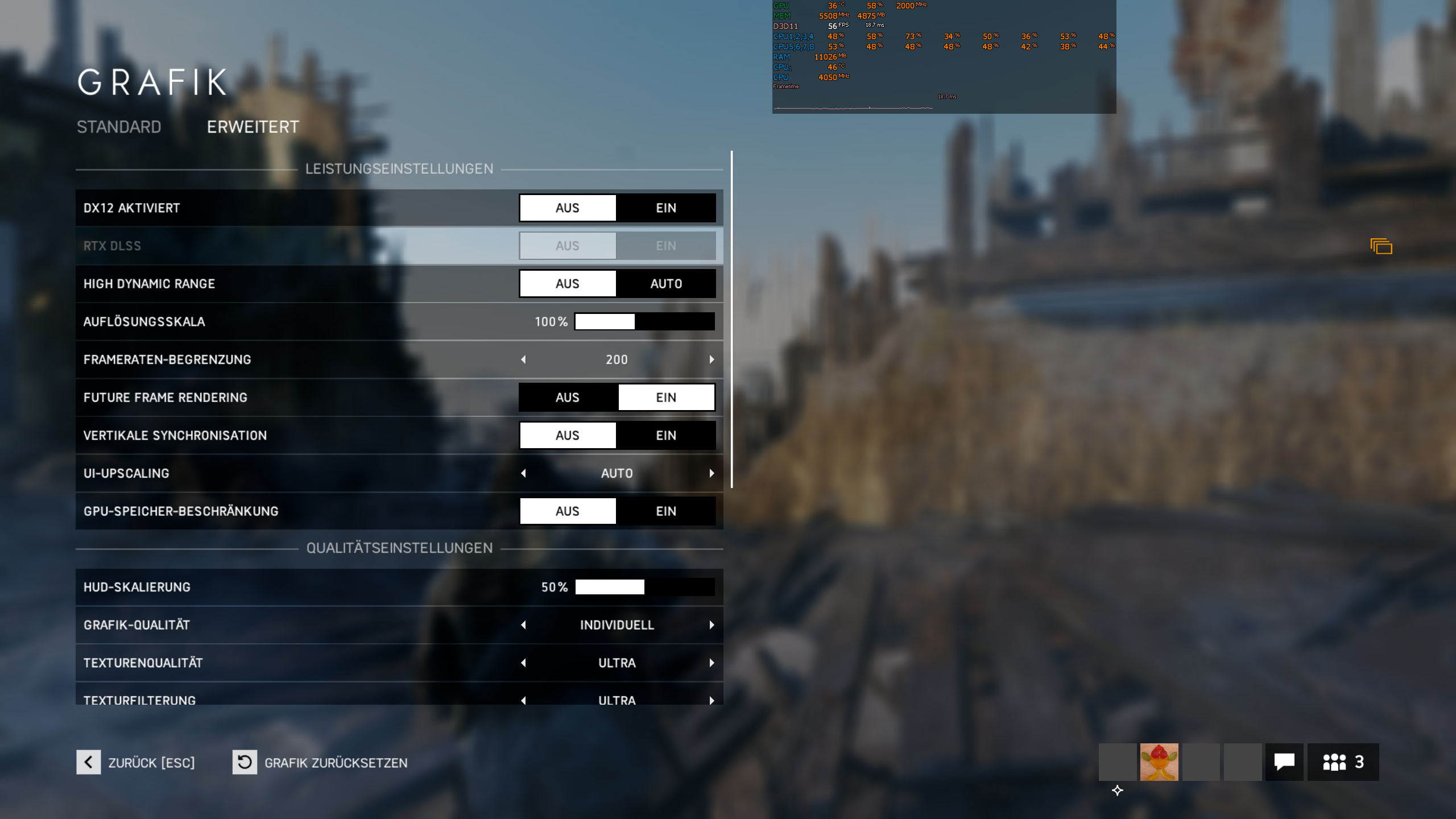DX11, FFR an, 100% Auflösungsskalierung, Ultra, linsenbrechung und so zeug aus = 40 bis 65fps