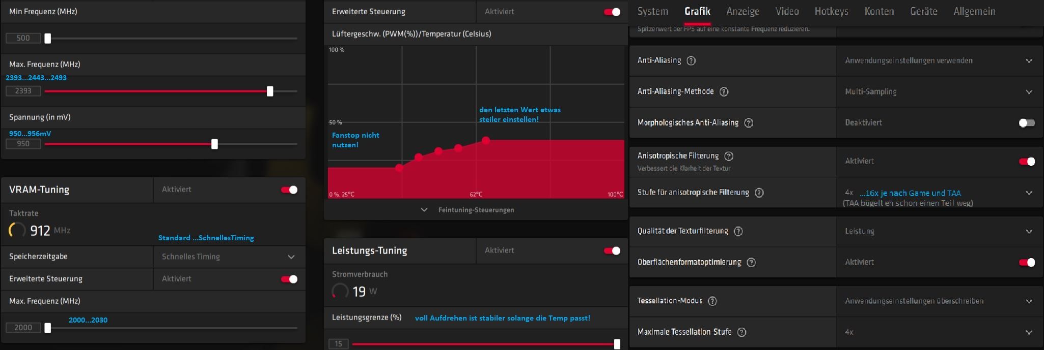 So, jetzt hab ich mal paar Stunden Mining ausgemacht und mit anderem Profil gezockt und wollte jetzt wieder minen... Also Mining Settings geladen: Zack: Instant nur noch 30-40MH/s.