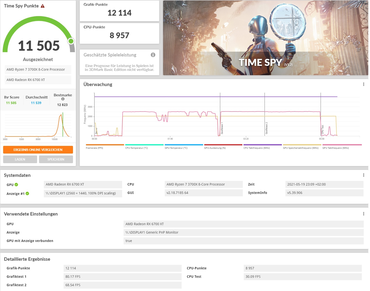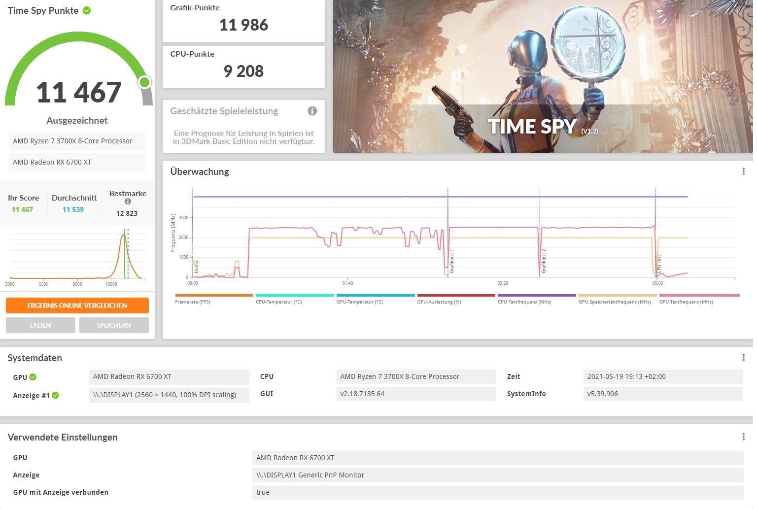 Ich bekomme leider mit meinen Einstellungen keinen gescheiten Durchlauf im Timespy Benchmark zustande...(Adrenalin 21.5.2, SAM aktiviert). Freesync habe ich aktiviert und deaktiviert getestet.