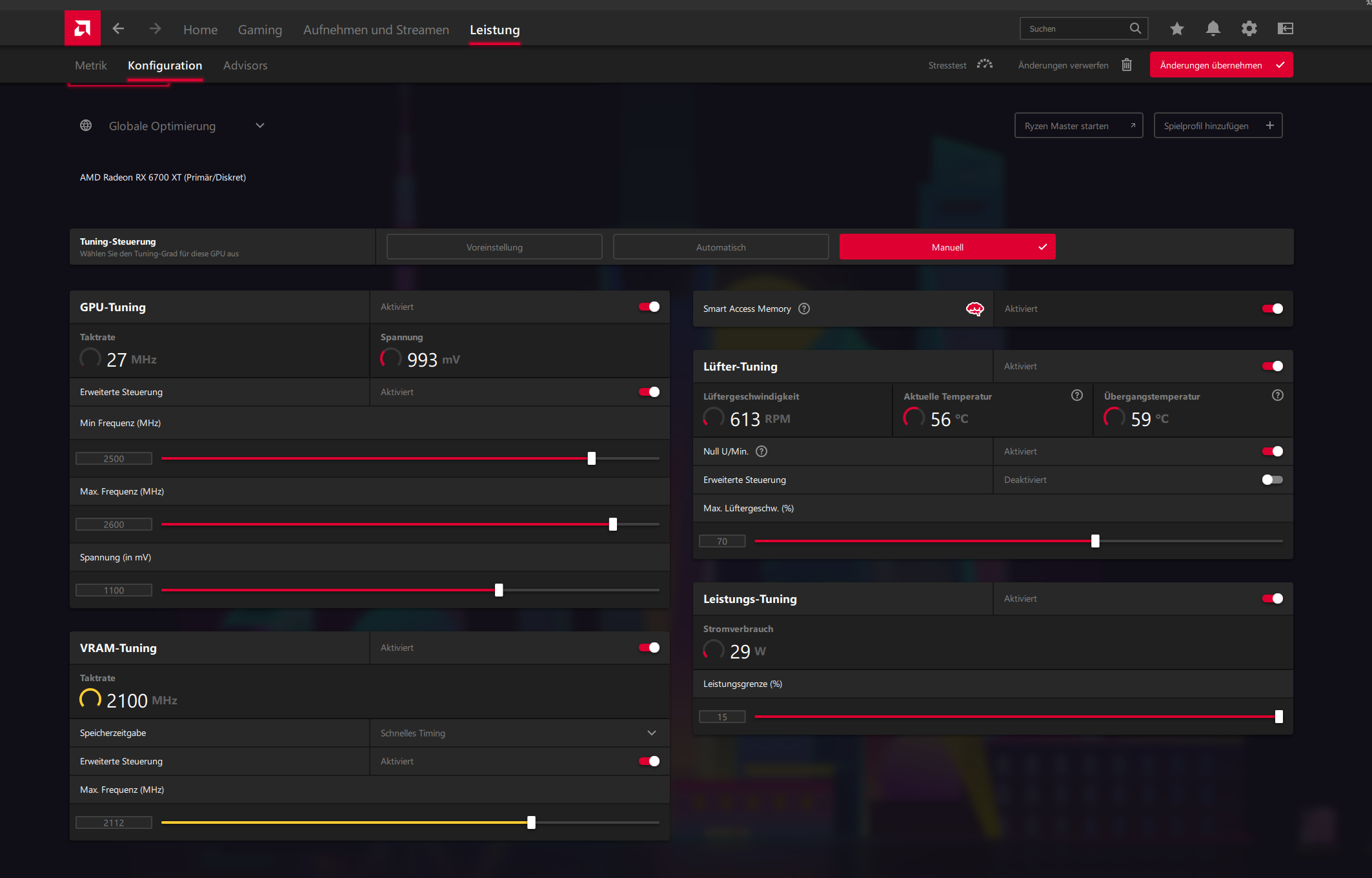 1100mv, VRAM 2112, SAM/RBAR aktiviert.