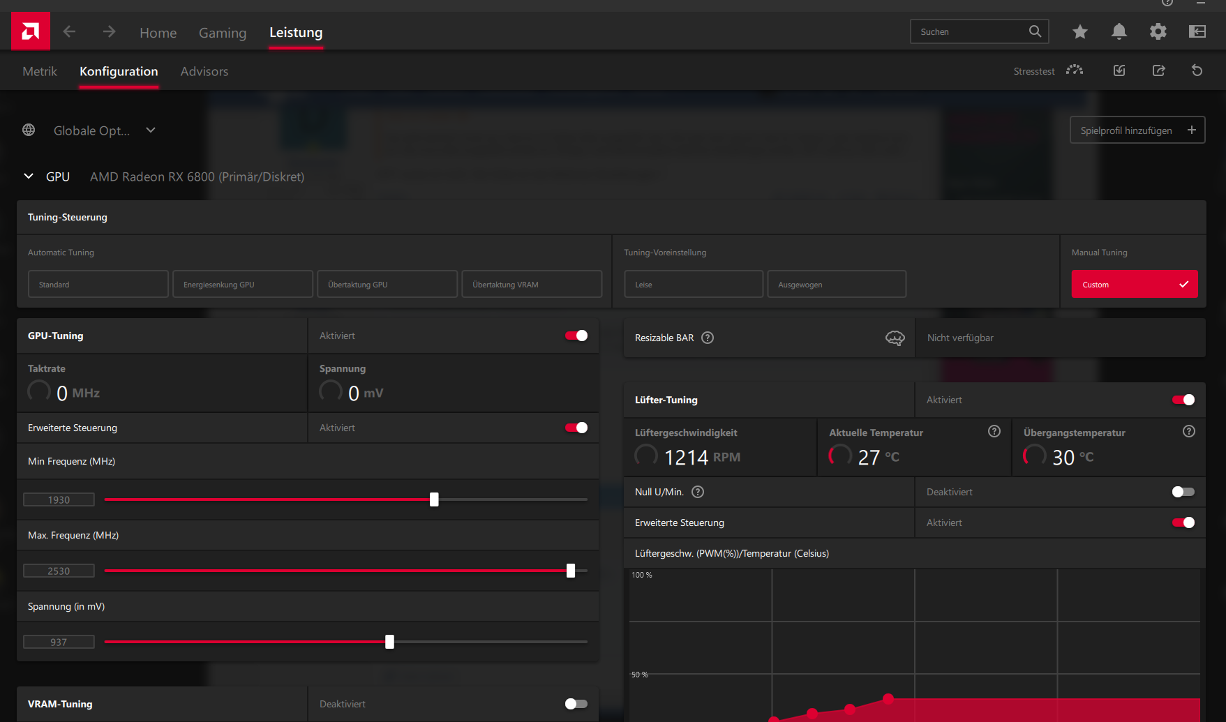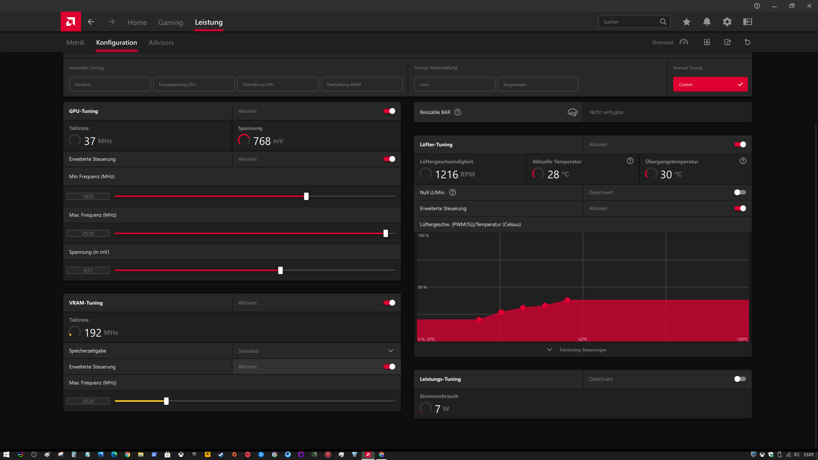 Und jetzt mal bei Leistung auf manuell und Vram-Tuning aktivieren und dann den Takt auf 2020 ändern.