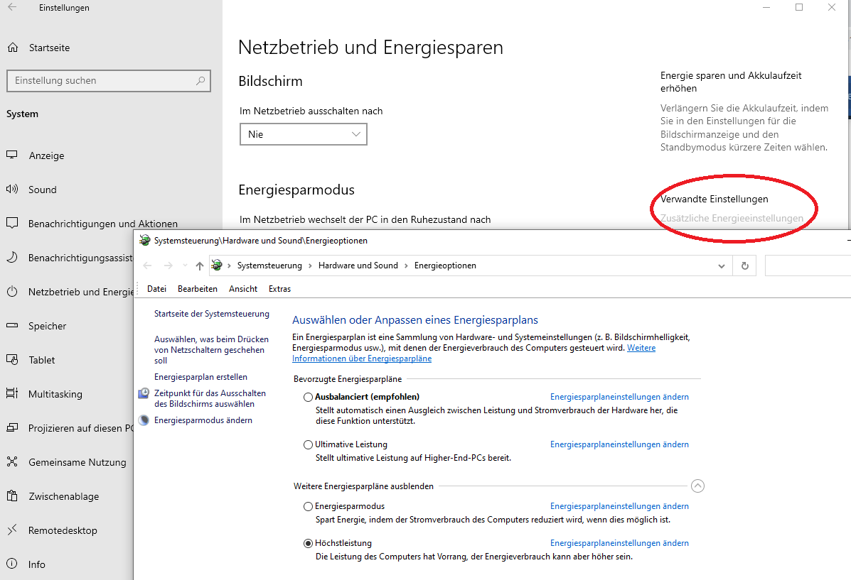 Bei W10 Energiesparoptionen mal noch bitte auf Höchstleistung gehen.