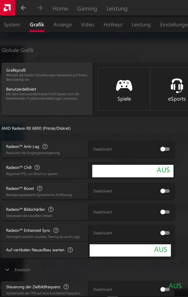 Ich habe wie gesagt noch keine Einstellung vorgenommen gehabt und der erste grafiktest klappte und beim zweiten brach der Test ab. BTW wo sehe ich das ? FPS Limit und vsync + freesync