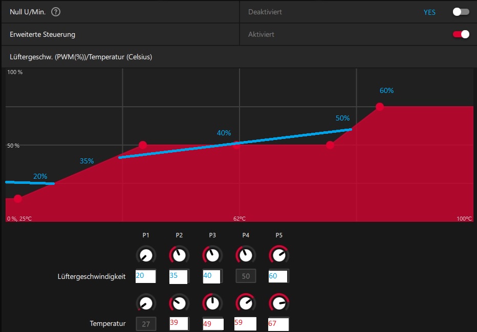 Was heisst ein Stück rauf ? Wie sollte die Kurve denn aussehen bzw. die Werte ?GerryB schrieb:Du musst evtl. mit der Lüfterdrehzahl noch ein Stück rauf, weil GT2 noch mehr heizt, um mal auszuschließen
