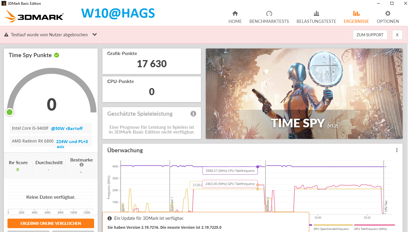 Wenn du eventuell bei der CPU noch was rausholen kannst, kommen vielleicht noch ein paar Pünktchen beim Grafiktest dazu.